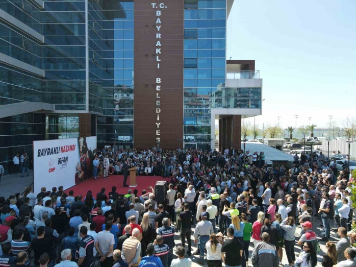 Görevine başlayan Bayraklı Belediye Başkanı İrfan Önal, Ramazan Bayramı öncesi düzenlenen törende personeliyle bayramlaştı. Davul-zurna eşliğinde, sloganlar ve alkışlarla karşılanan Başkan Önal, "Ben sizin üstünüz değil, çalışma arkadaşınızım. Emek veren, çalışan her arkadaşımın sonuna kadar yanında olacağım. Bayraklı için en iyisini hep birlikte hayata geçireceğiz" dedi.
