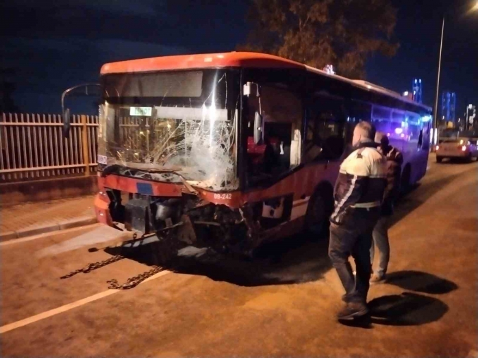 Kaza, saat 22.00 sıralarında Anadolu Caddesi’nde Çevre, Şehircilik ve İklim Değişikliği İl Müdürlüğü yakınlarında meydana geldi. Edinilen bilgiye göre, Konak yönüne seyir halinde olan İbrahim Bedir (32) idaresindeki 35 ARZ 177 plakalı otomobil ile İ.T. (42) yönetimindeki 35 R 4956 plakalı belediye otobüsü kafa kafaya çarpıştı. Çarpışmanın etkisiyle araçlar savrulurken, bölgeye polis, itfaiye ve sağlık ekipleri sevk edildi. Kaza nedeniyle yol trafiğe kapanırken, polis ekipleri yolda güvenlik önlemi aldı. İtfaiye ekipleri tarafından otomobilde sıkışan 2 kişi çıkartılırken, sağlık ekipleri tarafından yapılan kontrolde otomobil sürücüsü İbrahim Bedir’in hayatını kaybettiği belirlendi. Otomobilde bulunan ağır yaralı Ü.C.G. ile otobüs şoförü İ.T., sağlık ekipleri tarafından ambulansla hastaneye kaldırıldı. Kazada hayatını kaybeden İbrahim Bedir’in cenazesi, savcı tarafından olay yerinde yapılan incelemenin ardından İzmir Adli Tıp Kurumu morguna kaldırıldı.