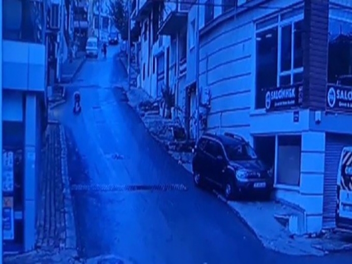 Öte yandan meydana gelen olay çevredeki bir güvenlik kamerası tarafından kaydedildi. Görüntüde, arabanın yokuş aşağı kaydığı, kaldırıma çarparak durduğu esnada bebeğin arabadan savrulduğu ve bir vatandaşın yardıma koştuğu anlar yer aldı.