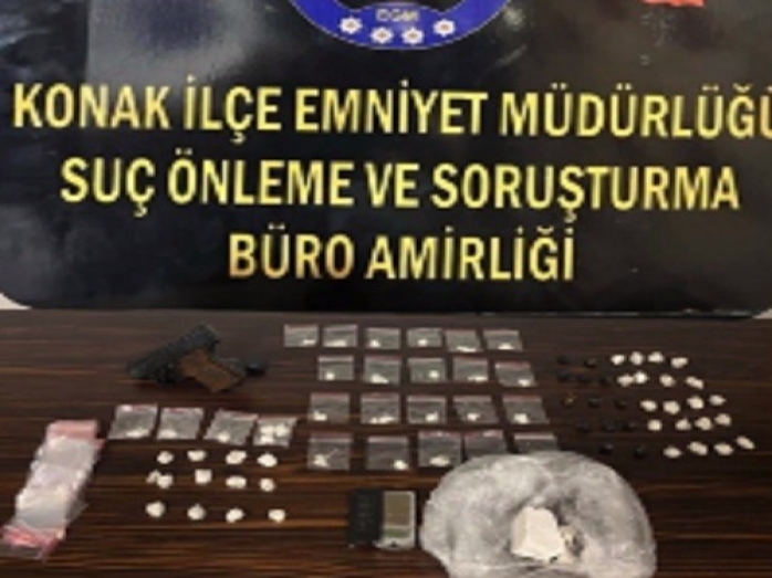 Konak İlçe Emniyet Müdürlüğü Suç Önleme ve Soruşturma Büro Amirliği ve Narkoalan ekiplerinin uyuşturucu madde ticareti ve kullanımını önlemeye yönelik çalışmaları sürüyor. Polis ekipleri tarafından yapılan çalışmalarda, uyuşturucu ticareti yaptığı belirlenen 49 şüpheli yakalandı. Polis tarafından yapılan aramalarda ise, 2 kilo 53 gram esrar, 1 kilo 221 gram bonzai, 165 adet uyuşturucu hap, 1 kilo 564 gram kokain, 863 gram metamfetamin ve 15 bin 138 sentetik ecza hapı ele geçirildi.