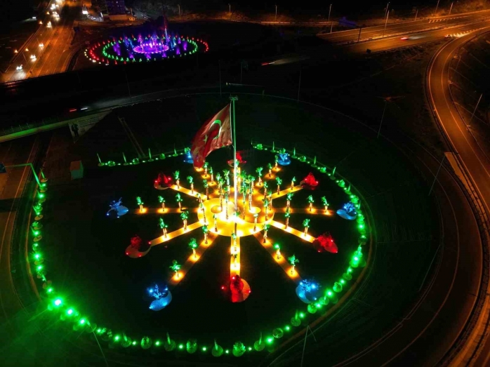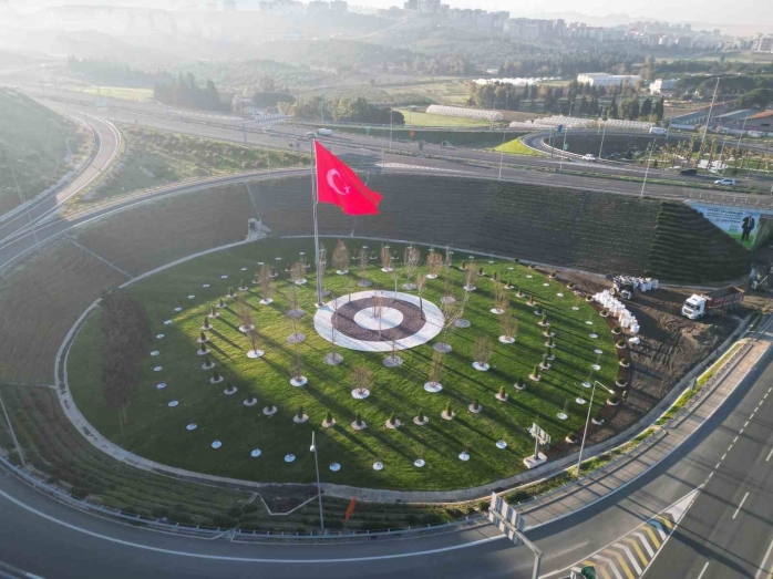 MENEMEN BELEDİYESİ, KOYUNDERE 100. YIL OTOYOL KAVŞAĞINDA GERÇEKLEŞTİRDİĞİ PEYZAJ ÇALIŞMASINI TAMAMLADI. PALMİYE, ÇINAR AĞACI, GÜRGEN, KALEM SELVİ VE ÇALI TÜRLERİYLE RENGÂRENK BİR GÖRÜNÜME KAVUŞAN KAVŞAK, DÖRT BİR YANINDAN DALGALANAN TÜRK BAYRAKLARININ GÖNDERE ÇEKİLMESİ İLE TAÇLANDI.