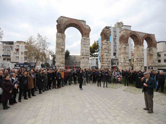 Selçuk Belediye Başkanı Filiz Ceritoğlu Sengel’in çağrısıyla İstasyon Meydanı’nda toplanan sivil toplum kuruluşlarının temsilcileri, yapılan saldırıyı kınayarak tepkilerini dile getirdi.